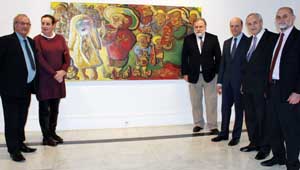 Posado ante una de las obras expuestas.