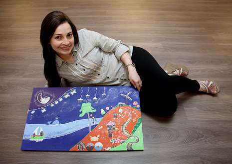 -Son casi cuarenta cuadros con motivos infantiles. Son obras realizadas con técnica mixta, que incluye, entre otros elementos, brillos y purpurinas.